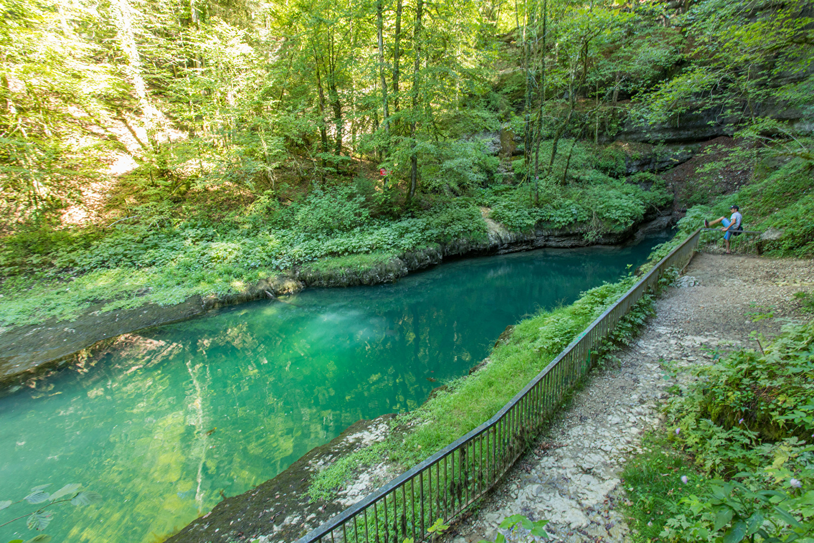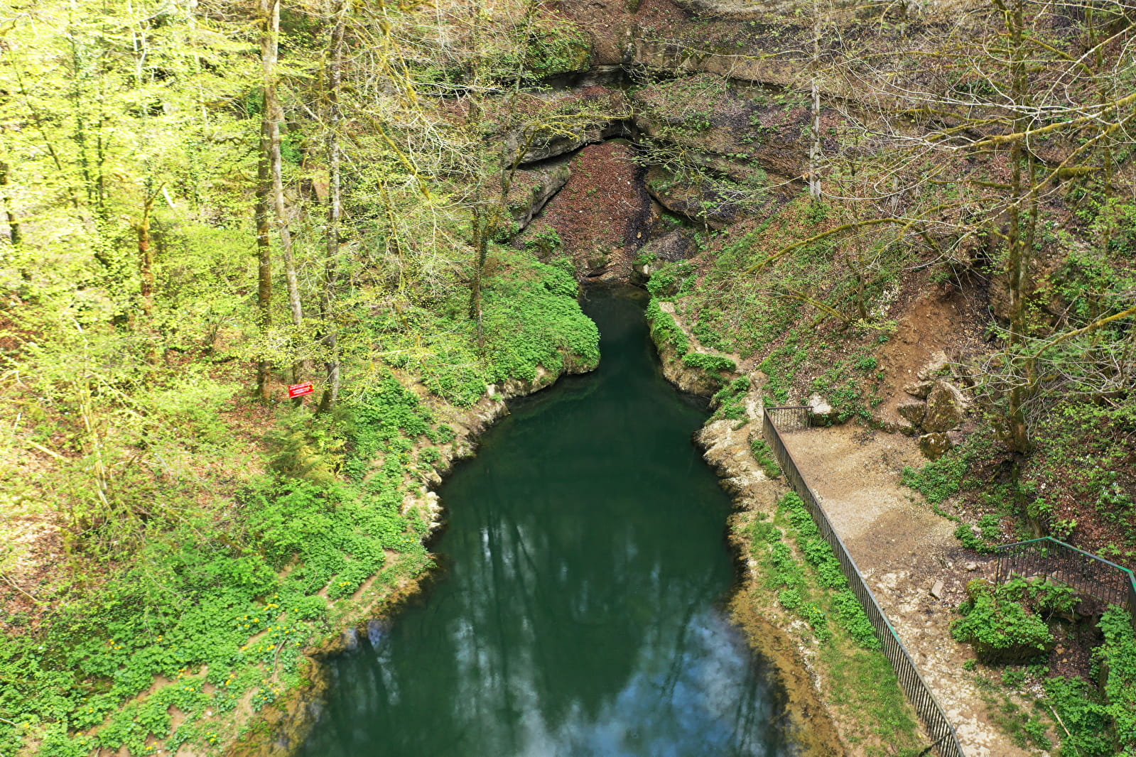 C’est à proximité de la petite cité médiévale de Nozeroy que se trouve ce site exceptionnel, bien dissimulé sous le couvert boisé. Un concentré de pépites naturelles qui ponctuent les différents sentiers aménagés, dont la vedette n’est autre que la source de l’Ain elle-même. En eau ou à sec, elle réserve toujours des surprises : son étendue paisible et captivante se retire, de temps à autre, pour dévoiler ses entrailles énigmatiques qui passionnent de nombreux spéléologues aguerris.
