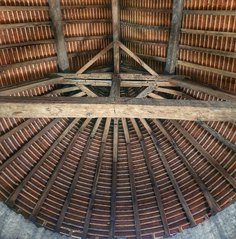 Cette tour, en partie conservée, s’intégrait à l’enceinte fortifiée de la ville. Elle renforçait un point faible à proximité de la rivière. Les traces les plus anciennes se trouvent actuellement au centre du bâtiment. La partie en hémicycle, ajoutée à la fin du Moyen Âge (15e s.), est dotée à son sommet de trois canonnières actuellement bouchées. La charpente en demi-cône n’est pas datée, mais elle n’existait pas au 17e siècle.