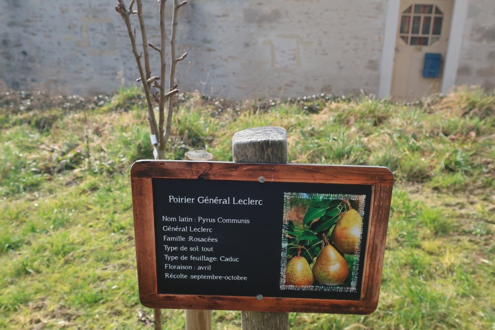 D’une surface d’environ 700m 2, ce sont 26 arbres (néfliers, cognassiers, pommiers, pruniers, cerisiers, poiriers, pêchers et figuiers) qui ont été plantés ainsi que plus d’une trentaine d’arbustes (cassis, framboisiers, groseilliers).