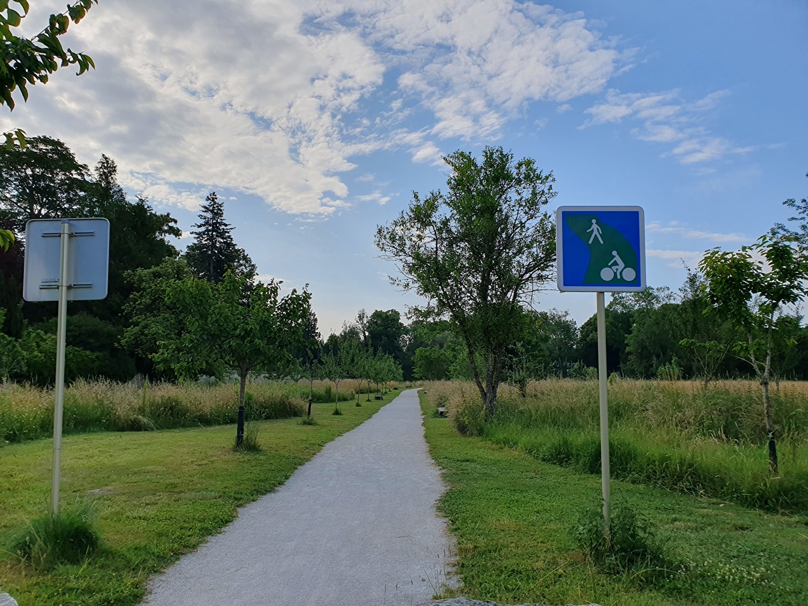 Après les 30 essences d'arbres fruitiers plantées en 2020, d'autres arbres ont été plantés fin 2024 pour marquer un chemin piéton, ainsi qu'une petite haie vers la passerelle.