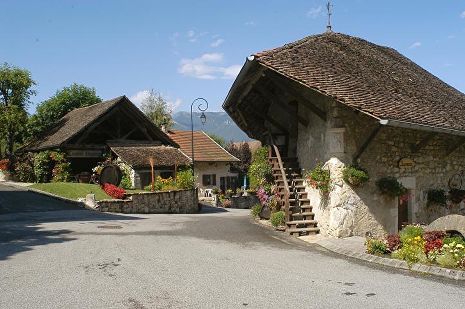 Le retour se fait ensuite à travers les villages vignerons du sud du Bugey. Il est possible d'effectuer un aller-retour le chemin longeant la côte nord du lac de Barterand pour admirer Gargantua et la Vouivre, légendes du Bugey sculptées dans la roche puis de visiter le patrimoine du village de Vongnes en se rendant au Caveau bugiste. Le Caveau bugiste comprend un musée des traditions vigneronnes et un musée des outils des métiers de la pierre, une salle d'exposition et propose des visites et dégustations de son caveau tous les jours de l'année.