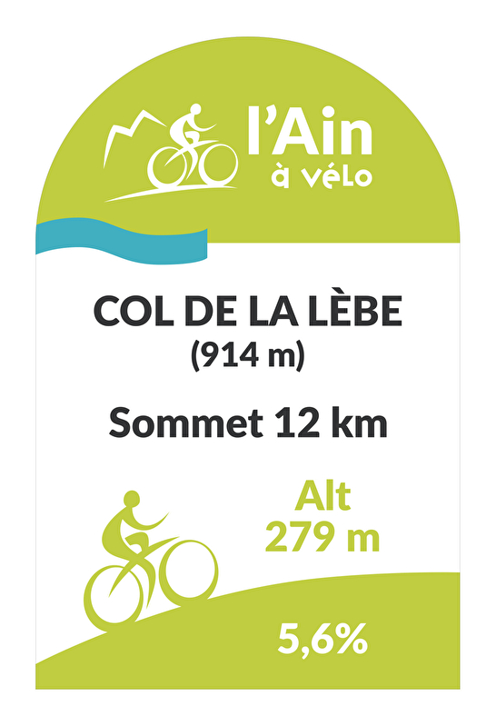 Le Col de la Lèbe (914 m), aux abords du Plateau d’Hauteville, propose une montée très agréable sans difficultés majeures (5,3 de % moyen de pentes) sur une route de bonne qualité. Cette ascension de 12,4 km depuis Artemare (versant Est) vous conduit de la basse vallée au plateau du Bugey, en traversant les prairies du Valromey. Dans un cadre champêtre, avec Le Grand Colombier en toile de fond à l'est vous passerez quelques épingles offrant une vue sur l'avant Pays Savoyard et les Alpes. Sur la route du col à 1 km du sommet se trouve l’Observatoire de la Lèbe, espace scientifique d’exploration, de jour et de nuit, ouvert à tous les publics. Accordez-vous une pause en redescendant .