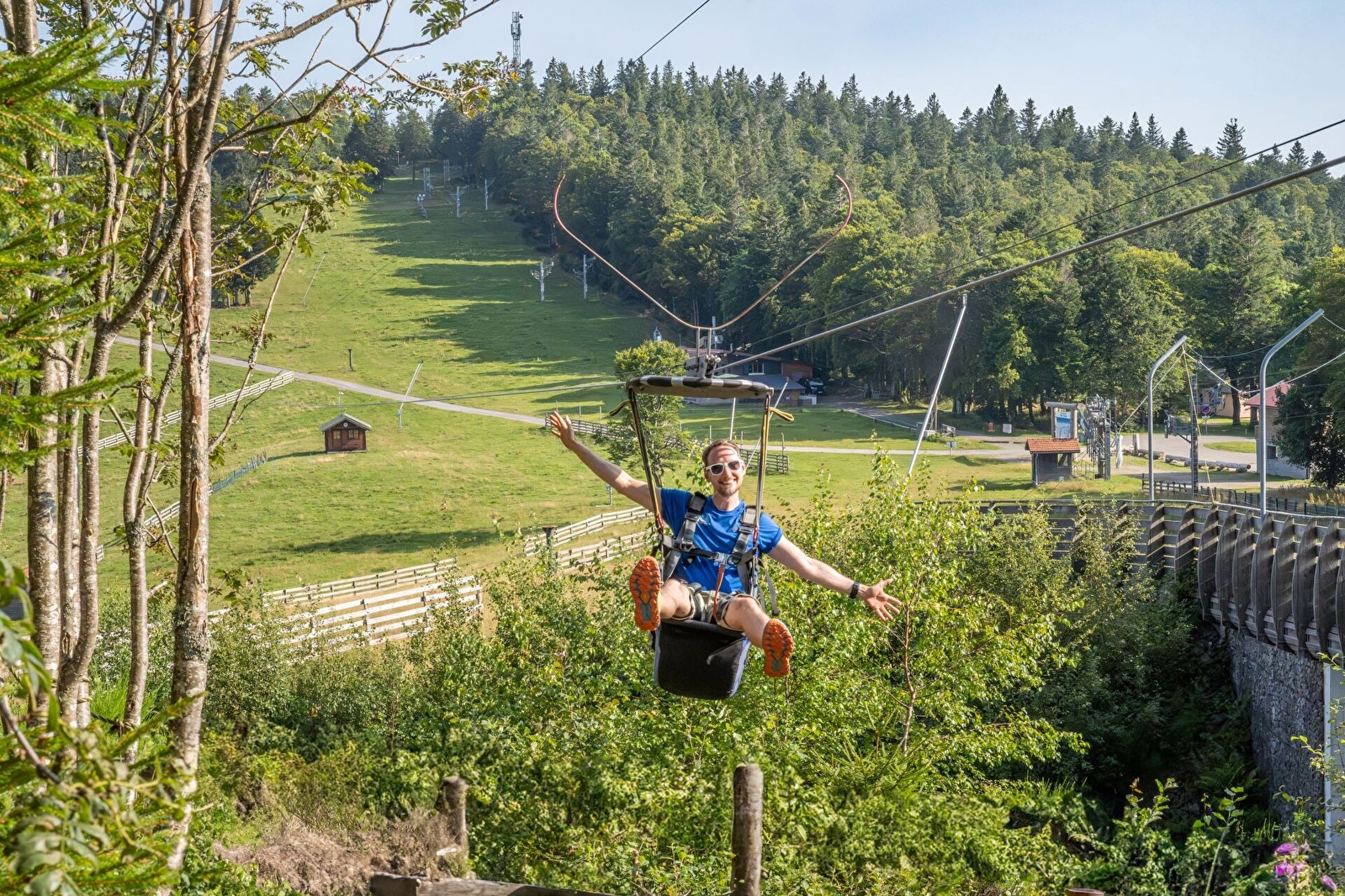 Ballon d'Alsace Aventure est un parcours aventure en forêt. Véritable trekking aérien grâce aux différentes activités suspendues : ponts de singe, tyroliennes, ou encore lianes de Tarzan. Sans oublier quatre autres activités insolites : une descente en Acro-bulle pour les plus courageux, un aller/retour de 900 mètres en tyrolienne électrique automatisée dans un paysage superbe, ou encore la location de VTT ou Trottinettes électriques … INCONTOURNABLE !