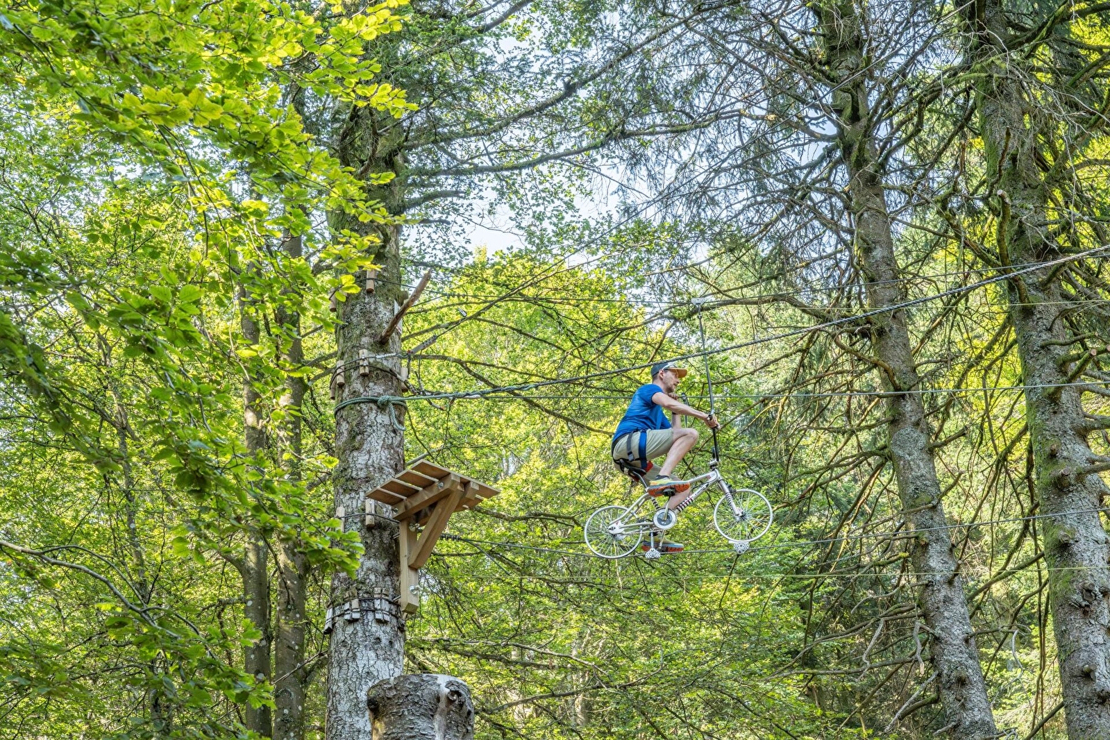 Les amateurs de défis seront comblés par le vélo sur câble à travers les arbres ! Cette expérience sensationnelle unique est l'occasion de tester de nouveaux obstacles et de repousser ses limites !