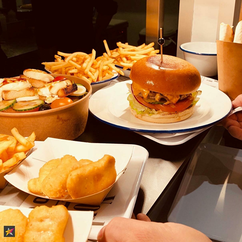 Le restaurant vous propose une carte variée de plats savoureux préparés sur place incluant des burgers, hot-dogs, wraps, tapas, salades et pokebowls… Des petites douceurs sucrées raviront aussi les gourmands comme des crêpes, gauffres, donuts, muffins, glaces et plus...
