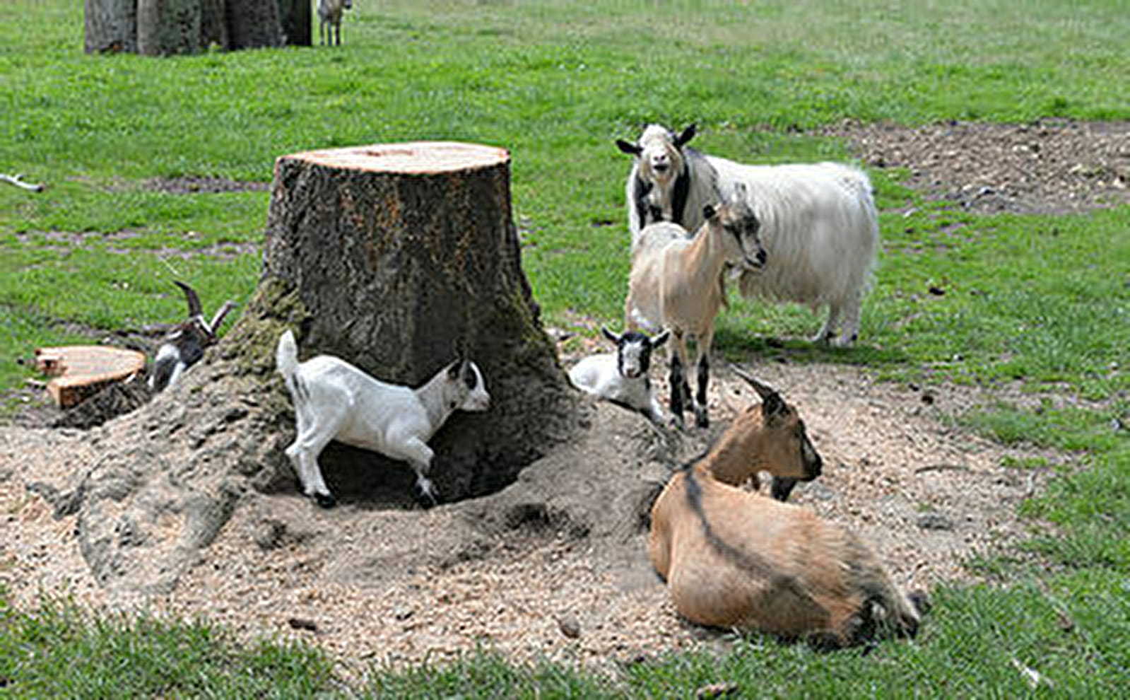Venez rendre visite aux animaux du parc animalier : poneys, wallaby de Benett, ânes, chèvres naines, daims, boucs, lapins, poules, faisans d'ornement, paons...