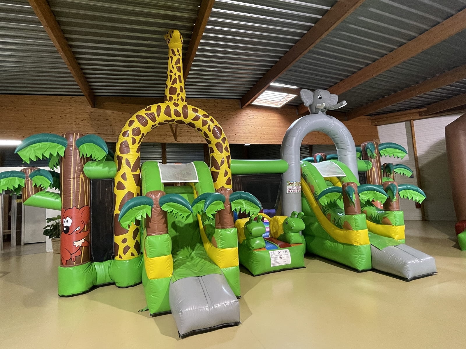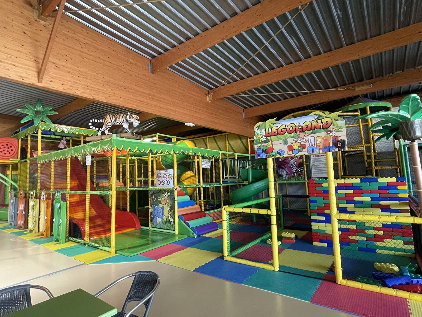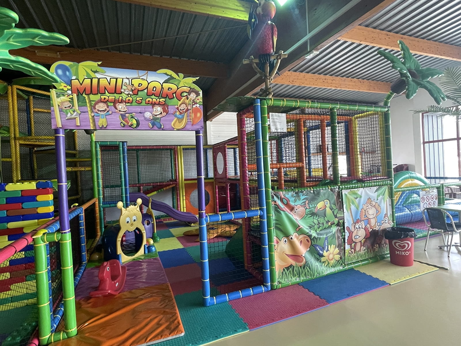 Hall couvert de 1000 m2, proposant de nombreuses activités : labyrinthe sur 3 niveaux, trampolines, jeux gonflables, toboggan, piscine à balles, légo géant, jeux ludiques...
