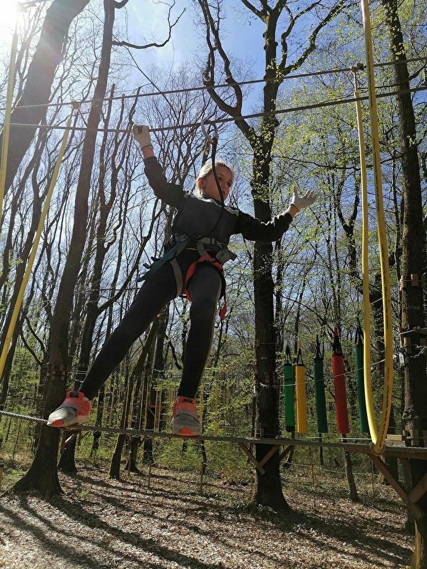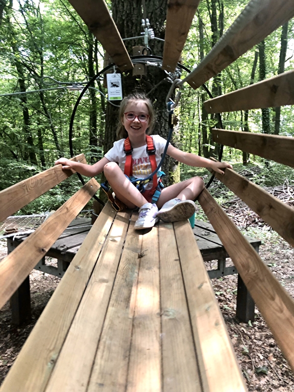 Une aventure totalement sécurisée grâce à l’installation sur l’ensemble des parcours d’une ligne de vie continue : les sensations sont garanties, le stress en moins !Parc aventure en hauteur.